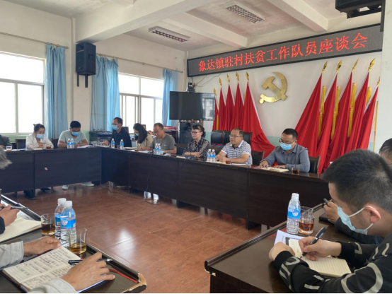 象达镇驻村扶贫工作队座谈会于2021年5月17日上午在象达镇政府大会议室召开,镇长赵天会主持本次座谈会,县联席办赵茂润主任、象达镇班子成员、各村(社区)党总支书记、驻村扶贫工作队员参加了本次座谈会,会上大家交流经验、畅谈体会,充分肯定了各位驻村扶贫工作队员在脱贫攻坚工作中所做出的努力,向奋斗在脱贫攻坚一线的“战友”们表示衷心的感谢。