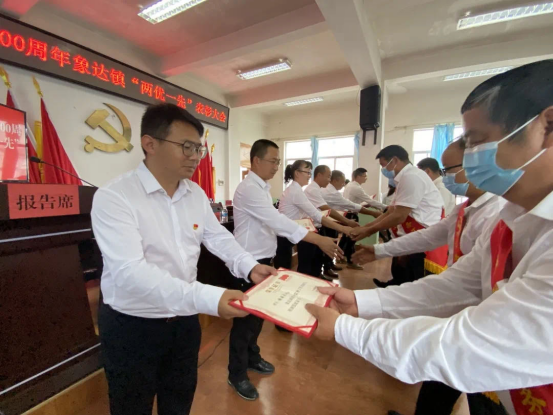 在喜迎党的百年华诞之际,6月30日,象达镇举行中国共产党成立100周年象达镇“两优一先”表彰大会,回顾党的百年光辉历程,讴歌党的丰功伟绩,激励各级党组织和广大党员不忘初心、牢记使命,锐意进取、砥砺前行,从党的百年奋斗史中汲取前进力量,奋力谱写社会主义现代化象达新篇章。