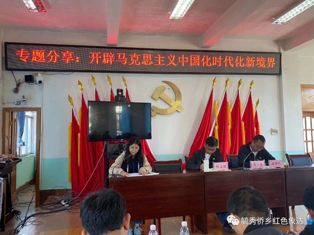 “三学”并举重实效。原原本本学。象达镇坚持把学习大会报告同学习大会系列讲话和相关文件结合起来,第一时间制定了《象达镇干部职工学习例会制度》,确保每周开展一次集中学习。同时通过班子会、“三会一课”“主题党日”等集中学习党的二十大报告。线上线下学。充分利用镇级“毓秀侨乡 红色象达”微信公众号,转发党的二十大重要论述,同时借助“学习强国”“云岭先锋”“农村大喇叭”“村级活动场所”等载体,通过观看视频、读原文、谈体会等方式,深一步深化学习。追随足迹学。充分发挥象达镇红色资源优势,依托朱家璧红色教学点、象达历史文化陈列馆,组织党员干部,开展现场参观教学。截至目前,象达镇共制定学习专题14个,镇村两级开展集中学习17次,开展学习分享活动1次,线上转发学习20余篇,开展现场讲解15场次,200余人次。