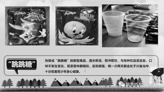 课堂上张老师给孩子们看了许多种毒品的图片和毒品伪装案例,让孩子们明白身边处处存在危险,一定要时刻警惕,注意保护自己,千万不能上当!让大家加深印象,提高警惕。