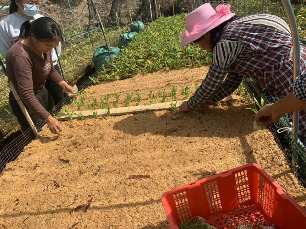 一年之计在于春,不误农时不负春光,在这春回大地的时节,斛农们正在培育石斛幼苗,他们搭建起育苗床,再放入细木屑,最后把小段石斛铺满斛床,待发芽生根后再移栽至“新居”。
