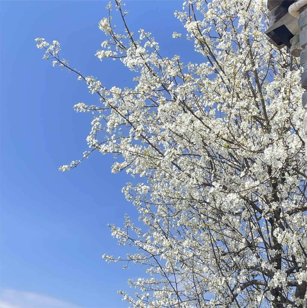临近芳春,勐蚌村的梨树也争先恐后的打着花苞相继绽放开来,大朵大朵地挂满在梨树枝头,它是勐蚌村春日的雪,伴着春风给农民带来了春耕的气息。沿着青石板铺成的石阶往上走去,静静地观赏梨花,看这一树,很美,看那一树,更美,花儿开地争奇斗艳,棵棵繁花胜雪,有一株正长在石阶中央的梨树已经长出了叶子,但嫩又翠绿的颜色点缀在树丛间也并不突兀,反而更增添了春的气息。