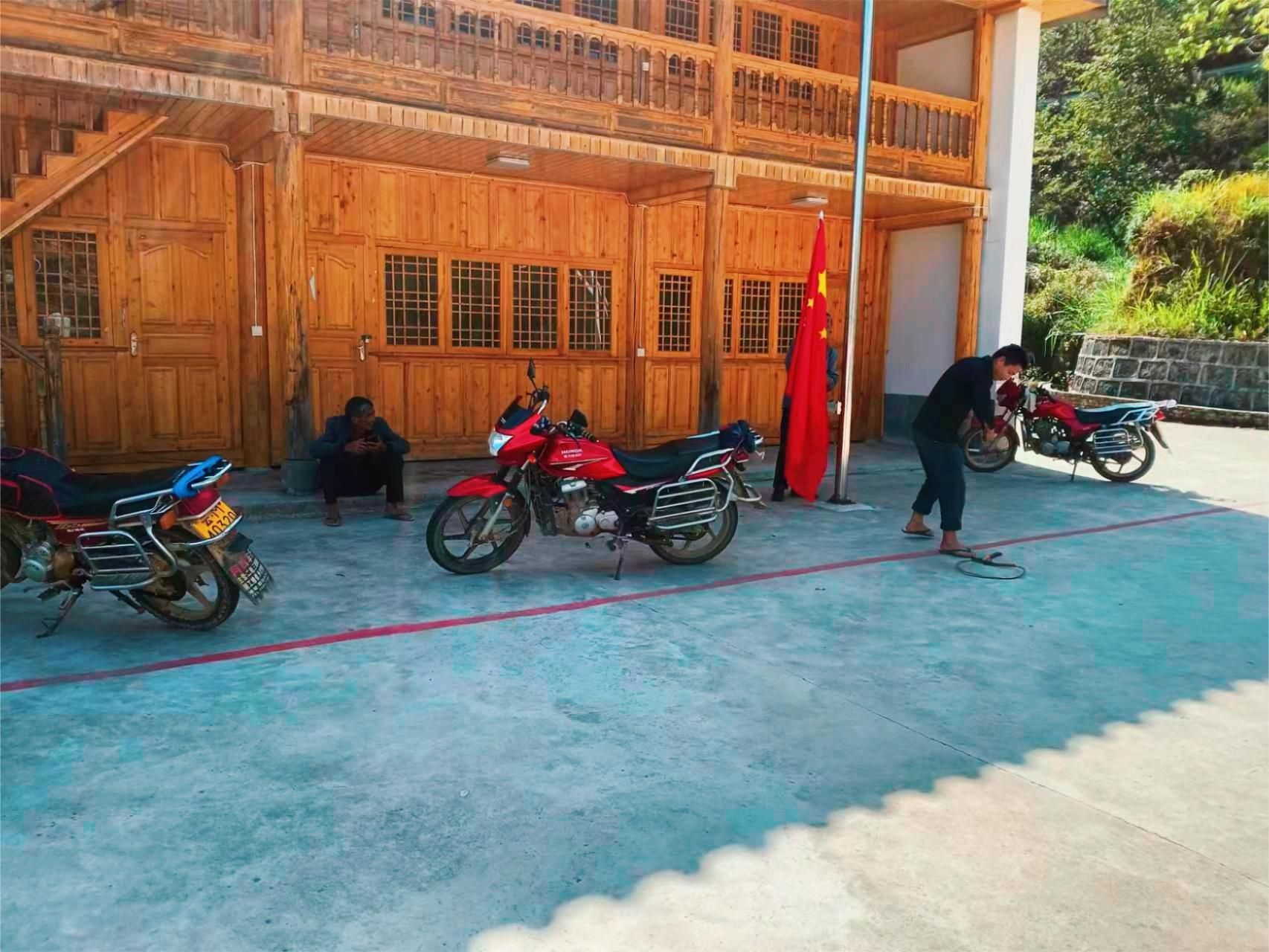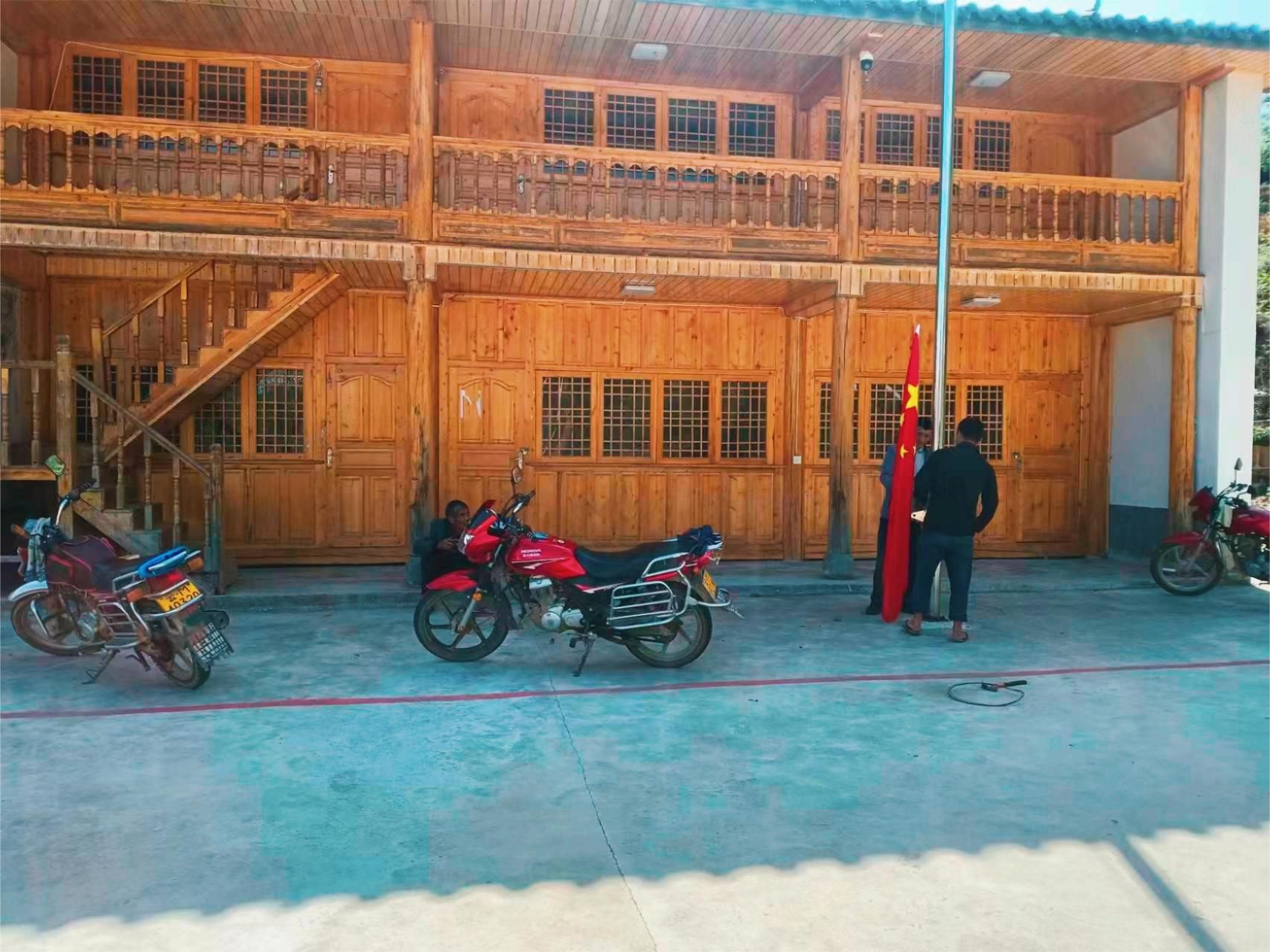 和幸坪活动场所是芹菜塘村搬迁安置点新建的活动室,自建成以来配套设施逐步完善。去年年初,在上级政府的支持下,所有活动场所都竖起了旗杆,唯独活动室的旗杆因钢绳接头未接稳导致脱落,一直没办法升国旗,大家尝试了很多次,均因工具不齐全,一直没有修好。