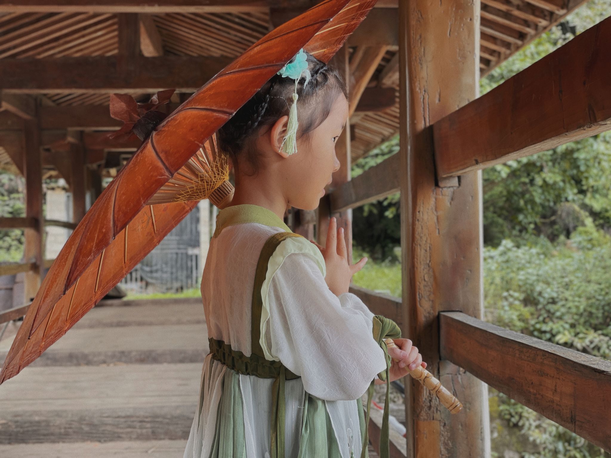 将手中的象达油纸伞轻放,伫立在桥中听雨,一人一伞一桥,那是与自然的对话,接受雨的洗礼,接受天地睿智的审视。蒋捷《虞美人听雨》中写到:少年听雨歌楼上,红烛昏罗帐;壮年听雨客舟中,江阔云低,断雁叫西风。朝阳的雨是细致的小雨,缠绵的小雨,微雨如酥,是纤指,是花针,是细丝,河雨交织,山桥共渡,四处飘逸着唐诗宋词的风韵,把朝阳描绘成一幅国色山水画卷。雨滴落在桥檐上,雨声合着河水声,谱写出烟雨的旋律,像是在弹奏一首悦耳动听的小曲,拨动着我的心弦。侧耳倾听,风从远方带来了口信:古道西风瘦马,小桥流水人家。我伸出手掌让雨打在手心里,起伏的滴答声将我瞬间带入到诗人黄庭坚的意境中:半烟半雨溪桥畔,渔翁醉着无人唤。