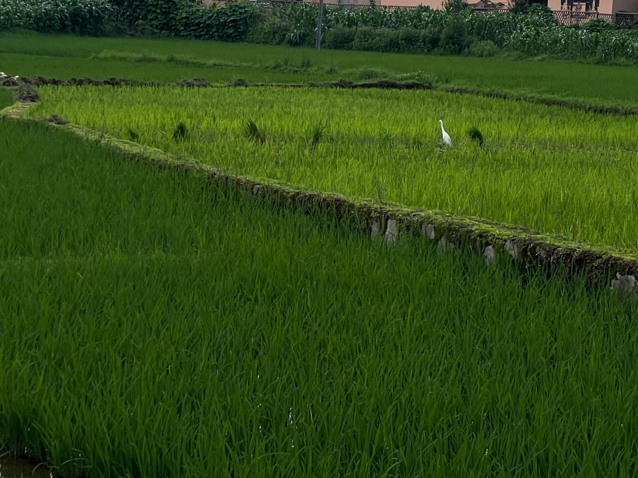 就在我思绪畅游的时候,一位身着蓑衣头戴斗笠的务农人矫健的穿梭在田埂里,这便是“竹杖芒鞋轻胜马,一蓑烟雨任平生”的真实写照与豪情人生。
