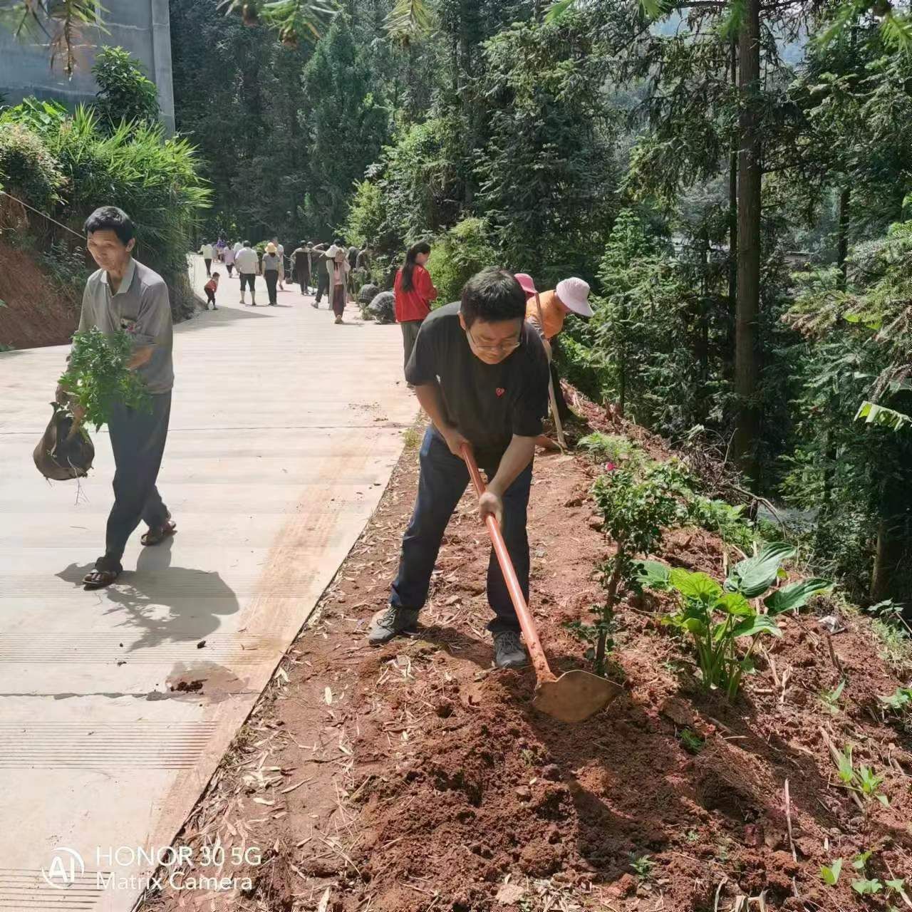 植树活动现场热火朝天,挖坑、培土、扶苗、踩实……大家分工合作、配合默契,干劲十足,每道工序都认真细致、一丝不苟,确保栽植一棵,成活一棵。此次活动充分发扬了党员群众的主人翁精神,心理洋溢着奋发向上的和谐氛围,植树热情高涨,现场一片忙碌的劳动景象。经过3个小时的热血“奋战”,共栽种三角梅200余棵,原来光秃秃的路肩上,一棵棵小树苗正迎风挺立,展现出蓬勃生机。