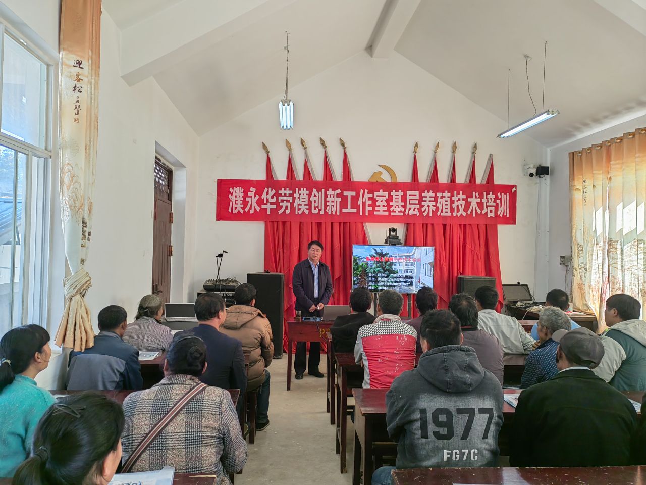 为加快象达镇坡头田村肉牛产业发展,坚定发展信心和决心,不断促进群众增收致富,助推乡村振兴。11月10日,在坡头田村举办了2023年肉牛科学养殖技术培训班,特邀获得“国务院政府特殊津贴”、云南省先进工作者、保山市动物疫病预防控制中心濮永华研究员和保山市畜牧工作站杨云艳副站长、高级畜牧师培训授课。坡头田村肉牛养殖大户及有养殖意向的农户共计50余人参加培训。本次学习内容为肉牛科学养殖技术和畜禽常见疫病防控技术。