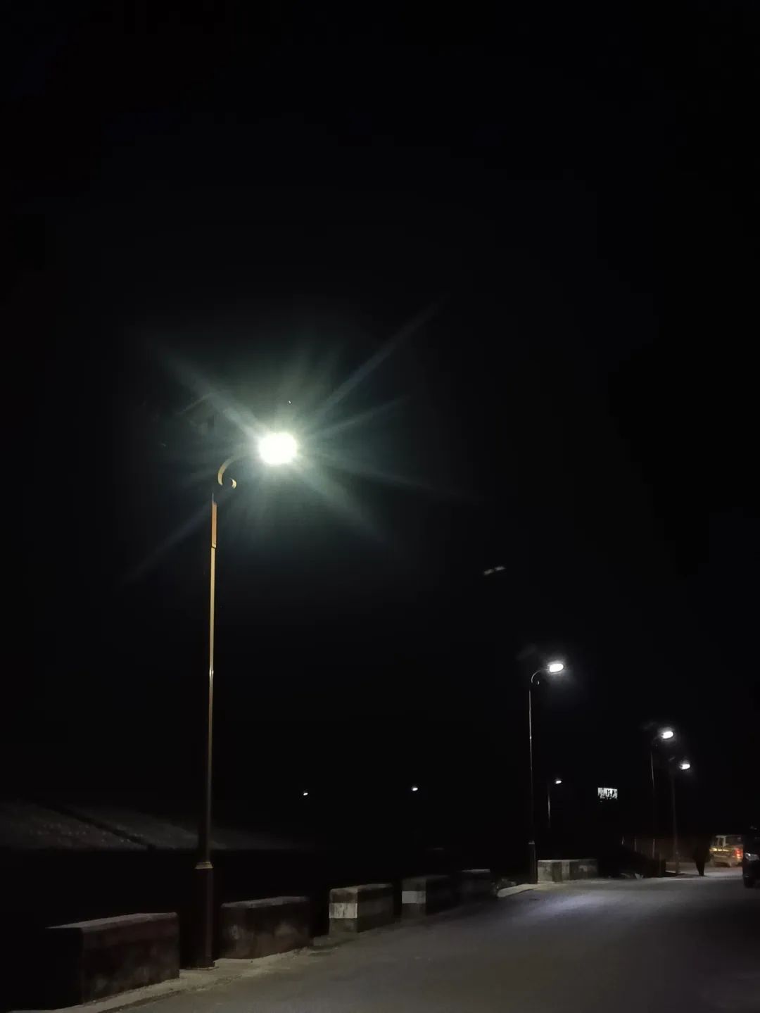 夜幕降临,霞光渐渐褪去,一盏盏路灯像繁星一样亮了起来,给寒冷的冬夜增添了丝丝暖意,过往的车辆和村民沐浴在明亮灯光中,奔赴更加美好幸福的生活。