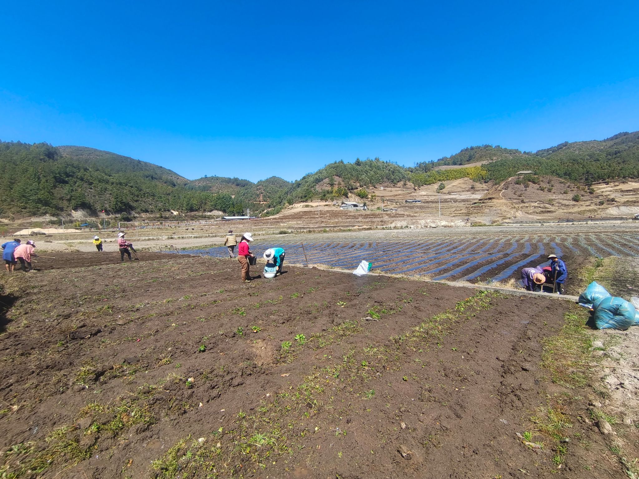 勐蚌村村民们从年初就开始搭建育苗棚,选优质高产、抗病能力强、商品性好的西兰花品种培育幼苗。经过精心培育,西蓝花幼苗长势良好,在每年三月初进行西蓝花移栽,村民们根据自己多年的栽种经验,通过翻土、施肥、起垄、覆膜、栽苗、浇水六步法完成西蓝花的移栽工作。