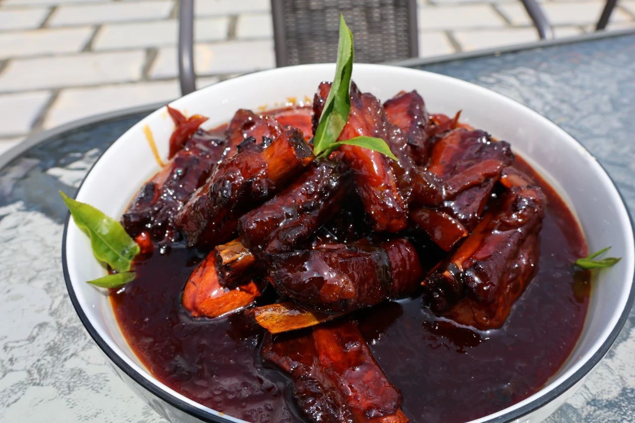 将冰糖炒至融化成焦糖色,加入茶叶混炒,倒入排骨快速翻炒并加入适量的水进行小火慢炖,色泽红亮的排骨上点缀着些许新鲜茶叶,香气扑鼻,肉质鲜嫩多汁,让人欲罢不能。