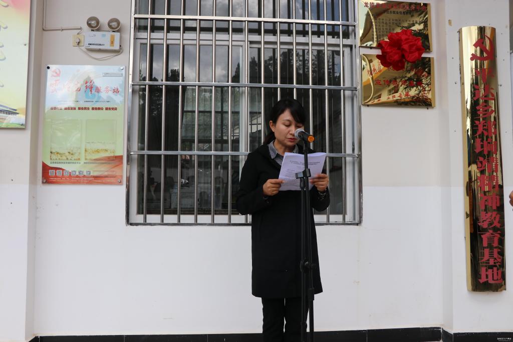 11月12日下午,保山市委宣传部、龙陵县委宣传部、平达乡党委政府在平达乡郑垧靖精神教育基地联合举行保山市首批命名的“不忘初心、牢记使命”宣传教育基地揭牌仪式,保山市委宣传部副部长汉黎明出席揭牌仪式并作讲话,龙陵县主题教育办、龙陵县委宣传部和平达乡党委政府的部分党员干部参加了揭牌仪式,揭牌仪式由龙陵县委常委、宣传部部长田叶同志主持。