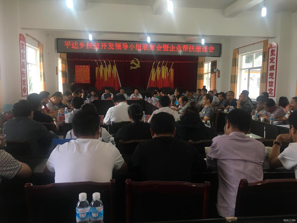 7月15日,平达乡召开扶贫开发领导小组联席会暨企业帮扶座谈会,市县挂包单位、企业领导等共计72人参加了会议。