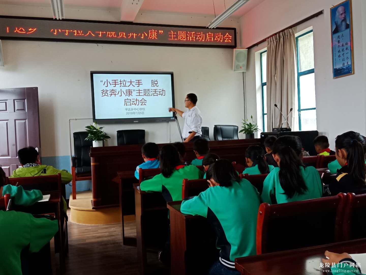 7月5日,平达乡中心学校组织“自强、诚信、感恩”公开课,启动主题活动,全乡各中小学、幼儿园13名校园长参加了观摩。主题活动以“小手拉大手”的形式,通过主题班会、家长会、开学典礼、国旗下讲话、黑板报和演讲、作文、绘画比赛、观看视频等丰富多彩的活动形式,使“扶贫先扶志、扶贫必扶智”向青少年延伸,倡议学生争当脱贫攻坚的宣讲员、解说员,为家庭的脱贫奔小康出谋划策,引导家长感恩党的好政策,不等、不靠、不要,依靠自身努力奋斗实现脱贫致富,达到“教育一个学生,带动一个家庭,影响一个片区,覆盖整个社会”目的,进一步提升群众满意度,助力脱贫攻坚工作,打赢脱贫攻坚战。