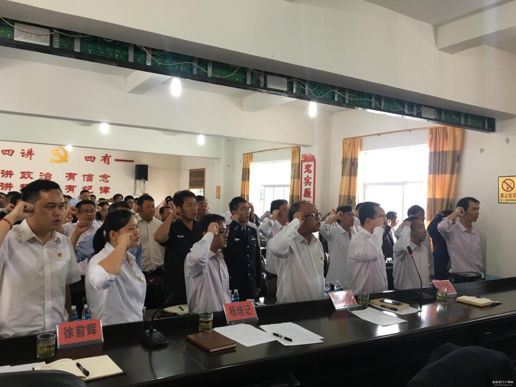 随后,乡党委书记带领参会党员面向党旗重温入党誓词,“我志愿加入中国共产党,拥护党的纲领,遵守党的章程……”,铿锵的入党誓词在整个会场响起。