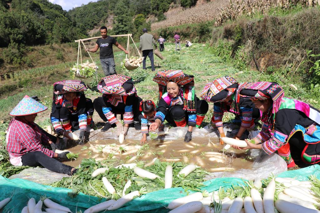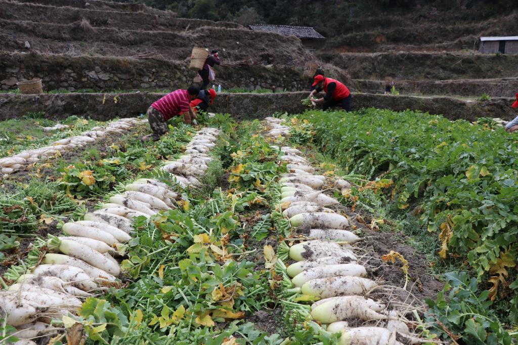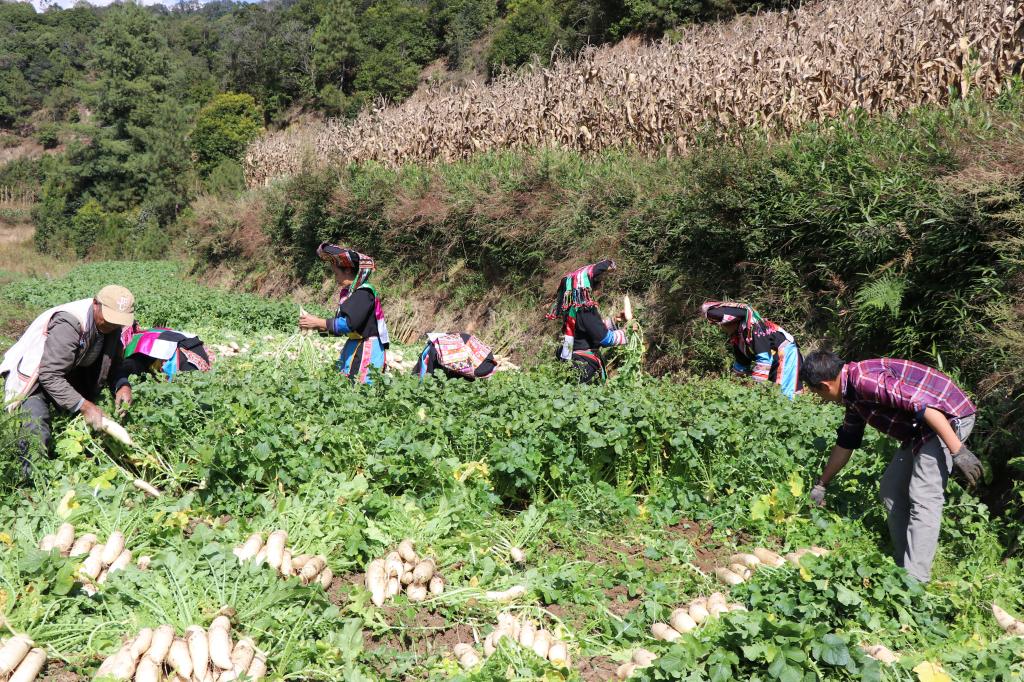 冬吃萝卜夏吃姜,不劳医生开药方。入冬以来,平达乡黄连河村的傈僳族村民种植的500多亩白萝卜破土而出,村民们正在田里忙着拔萝卜、收萝卜、卖萝卜,田间一派丰收喜悦的景象。