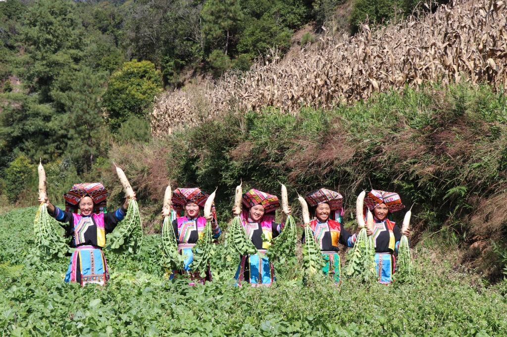 “今年8月底到9月初,烤烟收完后,我家就赶着时令在11亩烟田上种下了白萝卜籽,进入12月份,萝卜就可以卖了。平均亩产2吨左右,按照市场价格1600—2000元1吨,每亩产值在3200元—4000元,今年我家这一季烟后萝卜收入也有40000多块呢。”黄连河村傈僳族村民胡佳美开心地盘算着卖萝卜的收入账。