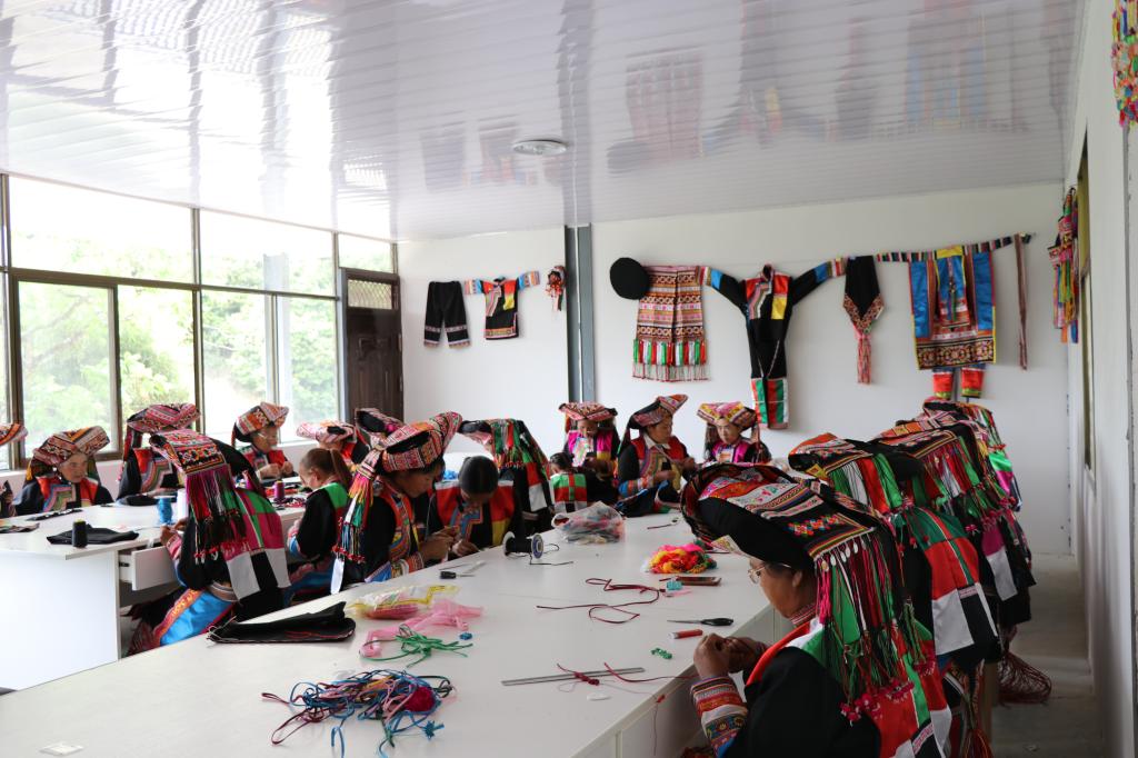 合作社采用“统分结合”运行模式,傈僳族妇女作为生产主体,可以在家或在合作社刺绣,做工灵活。合作社还定期邀请傈僳族民间刺绣能手,对傈僳族妇女进行专业培训,提高刺绣业务水平,实现“培训一人,成功一户,带动一片,致富一方”。在营销上,采用合作社统一接单、统一派活、统一技术指导、统一验收、统一销售、按利分成的模式,并借助上海闵行区销售平台进行成品销售,实现多赢创收,真正让傈僳族妇女从乡村走向工坊。