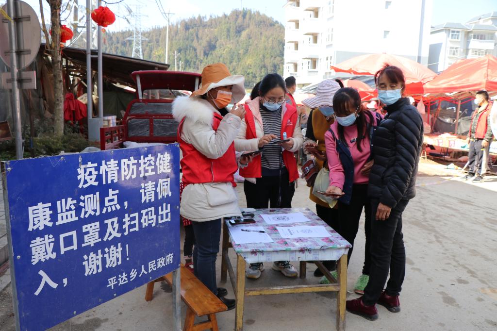 党员红,聚民心,党群服务“益”家亲。佩戴党员徽章、亮明党员身份、争当开路先锋,用党员身躯筑起疫情防控“红色堡垒”。为切实抓紧抓实疫情防控“外防输入、内防反弹”各项工作,平达乡充分发挥基层党组织战斗堡垒作用和党员先锋模范作用,把疫情防控工作作为当前最重要的工作来抓,以做好迎接新春各项工作为契机,平达乡党员干部发扬郑垧靖为民服务精神,带头抓实抓细迎接新春、疫情防控工作,对全乡十个村(社区)涉境外人员及其家庭实行一对一包保,每天对包保对象进行随访或电话询问,随时掌握包保对象及其家属的人员底数、活动动向。进村入户排查走访,协助各村(社区)开展精准排查,动态掌握外来人员基本情况,对中高风险地区返乡人员及时进行信息登记上报,确保不落一户、不漏一人;农贸集市执勤站岗,在农贸市场进出口设立疫情防控卡点,监督进入采购市民必须扫码、测量体温,佩戴口罩,有序进入市场采购年货,确保群众过个健康年。向农户发放《疫情防控相关通告》,引导群众春节期间不办酒、不聚会、不扎堆、不串门、出门要佩戴口罩等防护措施,在外出打工的倡议就地过年,让疫情防控深入人心、人人有责,切实提高群众自我保护意识,保障全乡人民过个平安年。
