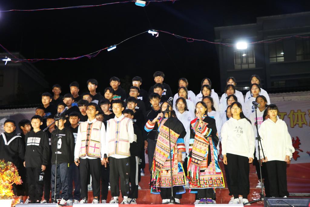 夜幕降临,精彩的文艺汇演为全体师生送上一场别开生面的视觉盛宴。舞蹈、小品、情景剧、吉他弹唱、合唱等多元化艺术表演形式,让文艺汇演高潮迭起,每一个节目都十分精彩,大家在属于自己的舞台上尽显风采。整个校园都飘荡着欢乐的歌声,响彻着此起彼伏的欢呼声。精心准备的节目淋漓尽致地展现出中学生天真活泼、团结向上的风貌,孩子们的表现可谓精彩纷呈,整场演出气氛热烈,活动现场似一片激情四溢的海洋。
