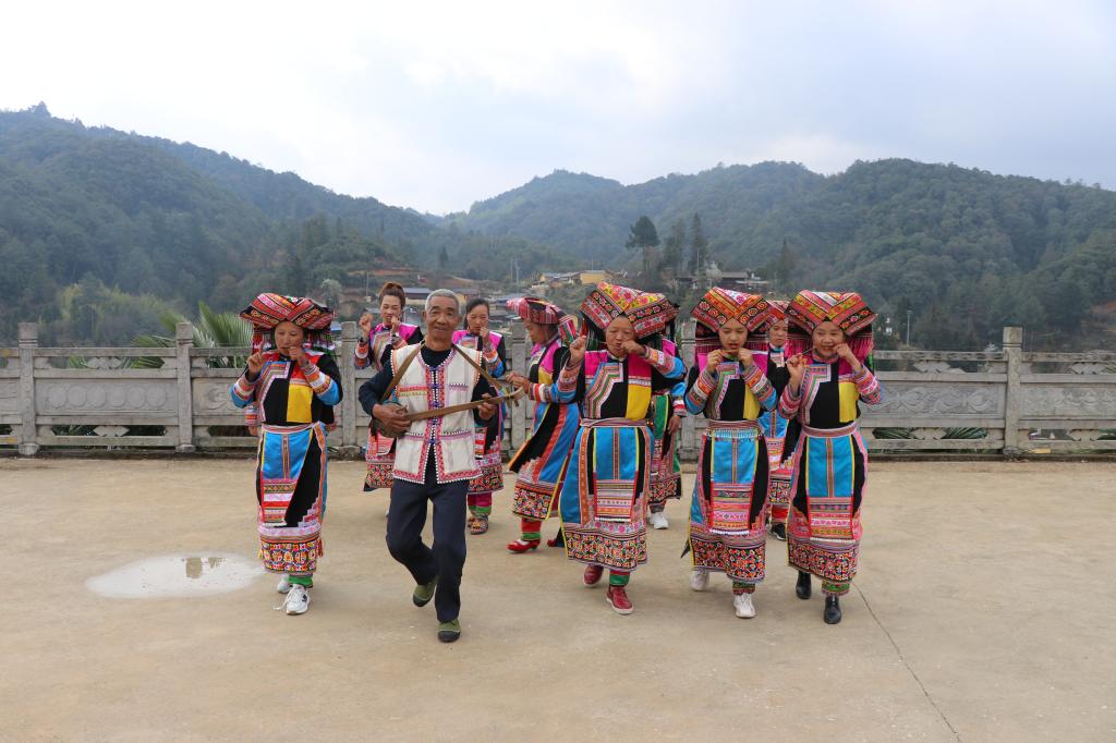 培训结束后,余宗富老人弹起三弦,傈僳族姑娘们在蓝天白云下打起歌,脚步轻盈明快,三弦悦耳赏心,韵味绵绵,让人深深感到傈僳族“刮欠”的艺术魅力。