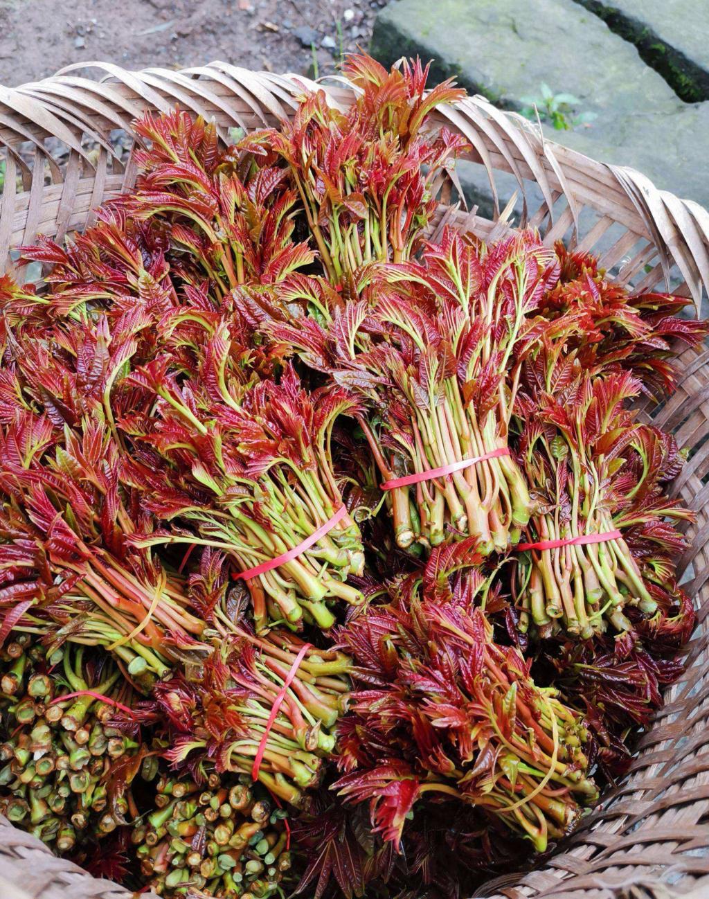 香椿是春季特有的一种食材,早春的香椿无丝,长出的小芽非常脆嫩,并散发出一股特别的香味,营养价值较高,富含钾、钙、镁元素,维生素C含量在蔬菜中也名列前茅。香椿的做法花样较多,可拌、可炸、可炒、也可煮,其中“香椿炒鸡蛋”便是最为家常的一种,将焯水后的香椿剁碎,倒入蛋液搅拌、下锅,香椿鲜,鸡蛋嫩,金黄翠绿相间,味道鲜美,营养也极为丰富。