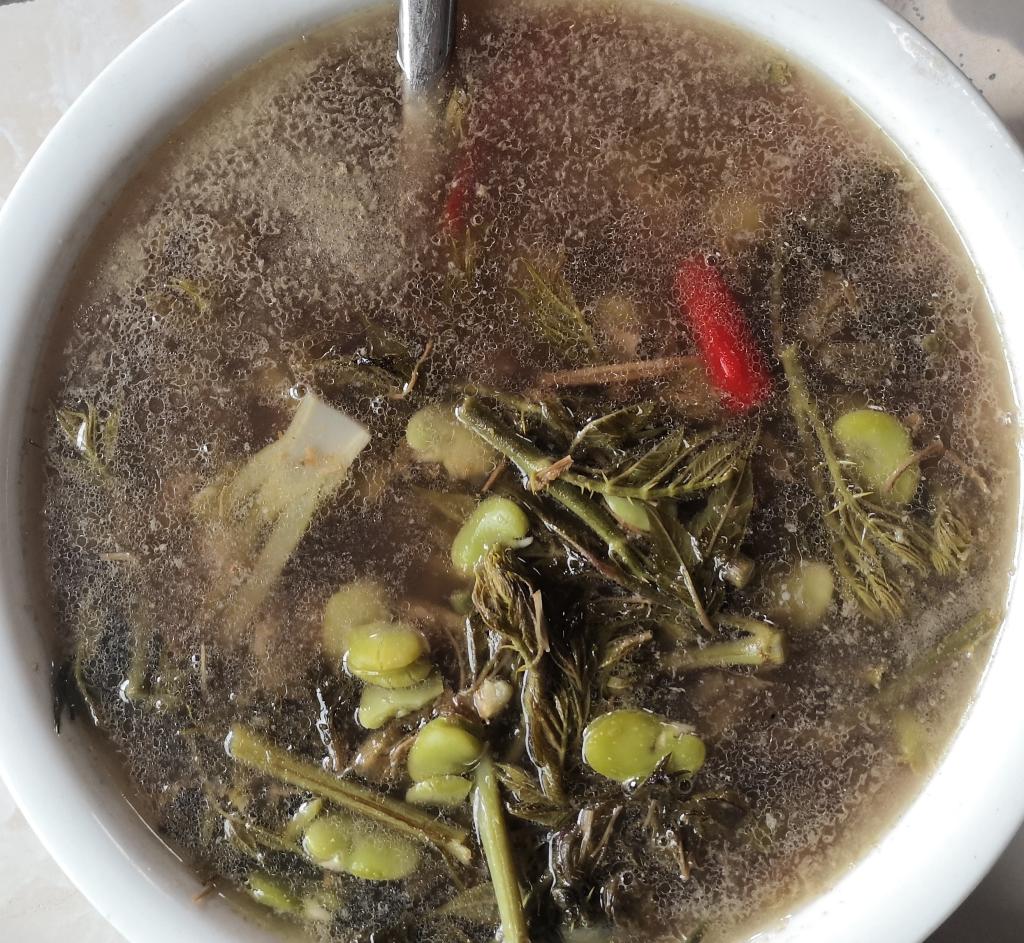 椿头苞,又名刺头苞,满身都长满了锋利带钩的刺,初生的枝芽呈包茎状,像刚冒出的马鹿角。味美可口、营养丰富,具有与众不同的味道和清热解毒的功效,是纯天然、绿色、无污染、无公害的一种优质野生蔬菜。椿头苞最好吃的食用方法是煮蚕豆米干腌菜汤,将椿头苞和蚕豆仁放在一块水煮,煮熟之后放上干腌菜,味道独具特色,开胃爽口。