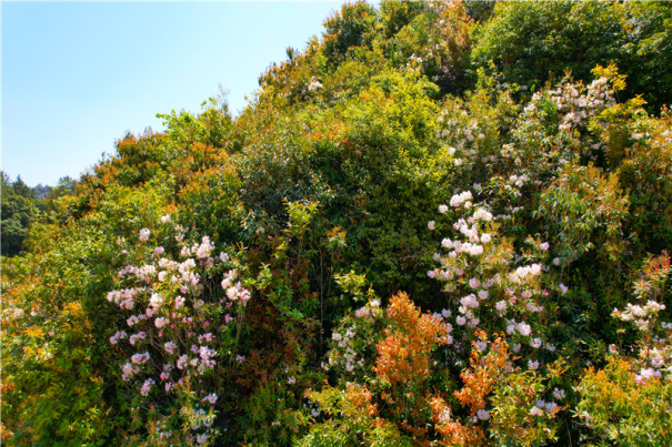 远远看去,这里的杜鹃花有的像散落在路边的星辰,泛着让人舒适的微光;有的像系在山腰的哈达,有让人羡慕的圣洁;有的像覆盖山头的雪花,仿若倔强的寒冬势要在这阳光的四月与春色一分高低。置身于此,心情特别舒畅,不知多少个寒冬的坚守换来这杜鹃的热闹满枝头,这是基层工作者最好的榜样了吧!