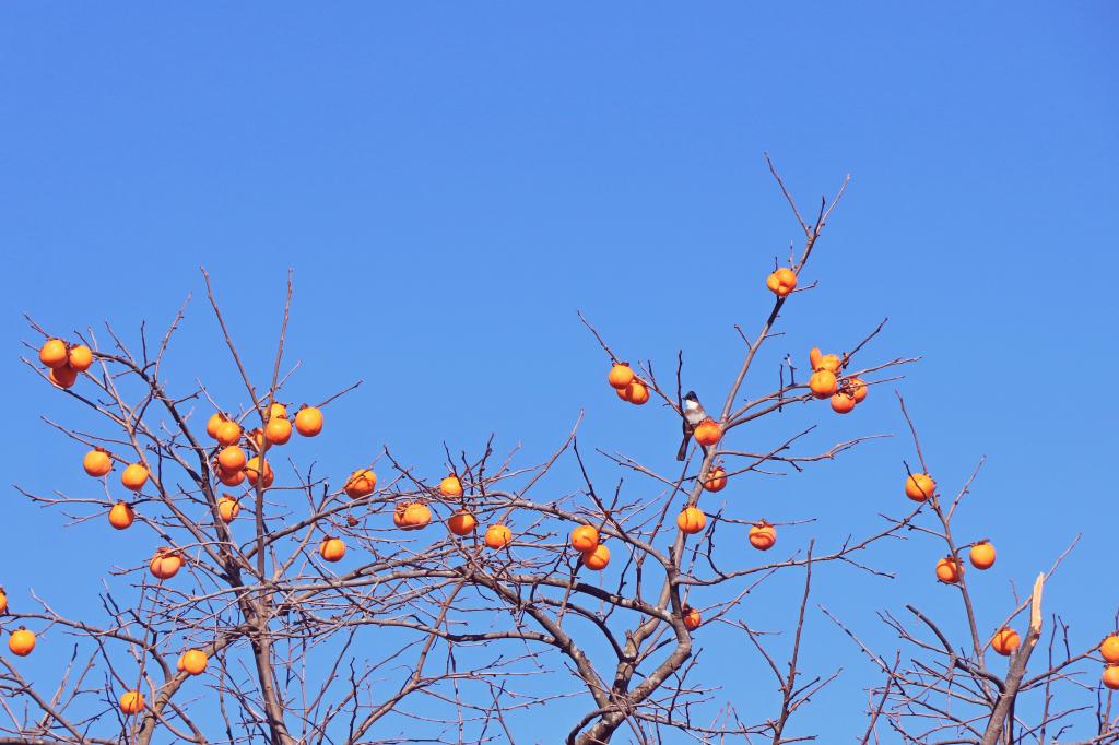 人们深感冬日不易,会在树枝头为动物留下一些柿子,让冬日的鸟儿可以收翅停在树梢,用纤细的喙轻轻嗑开果皮,吮吸柿子浓稠的柿汁,惬意地享受这一口口甜蜜溏心的山珍美味。