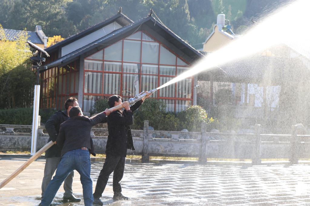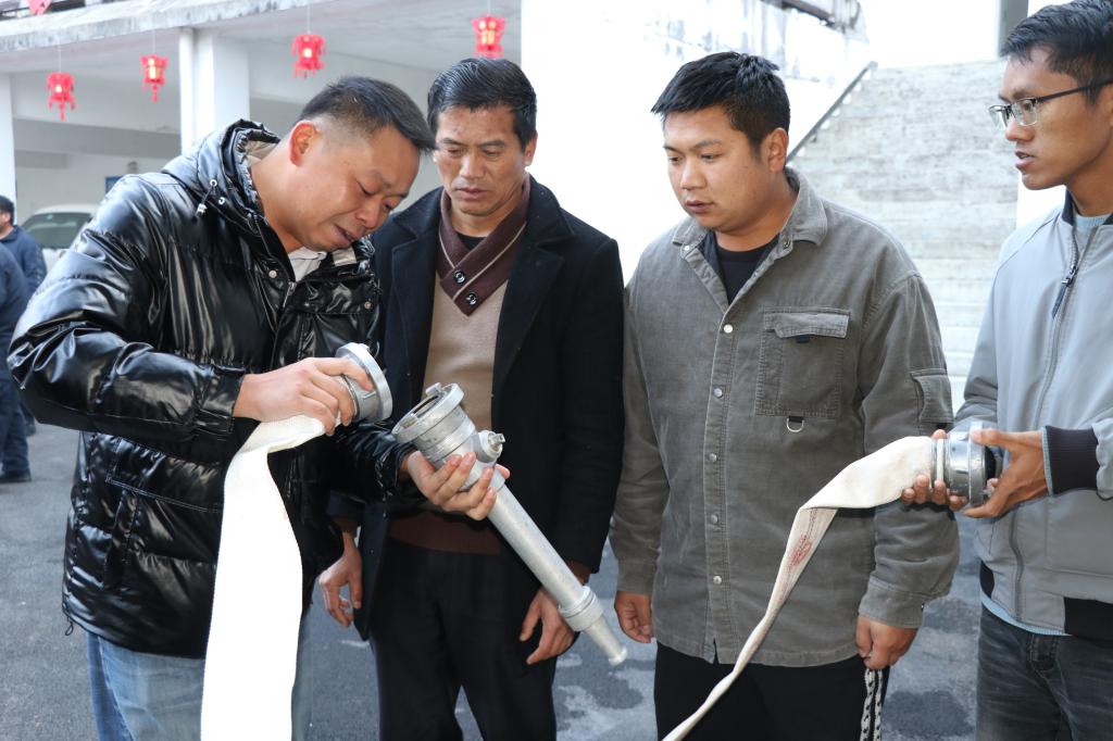 在实操课上,参训人员认真聆听消防水带连接、消防水枪喷水、抽水机使用等技巧。在熟悉消防设备使用技巧后,参训人员根据学习内容进行了实操,并使用各类消防器材进行了模拟演练。