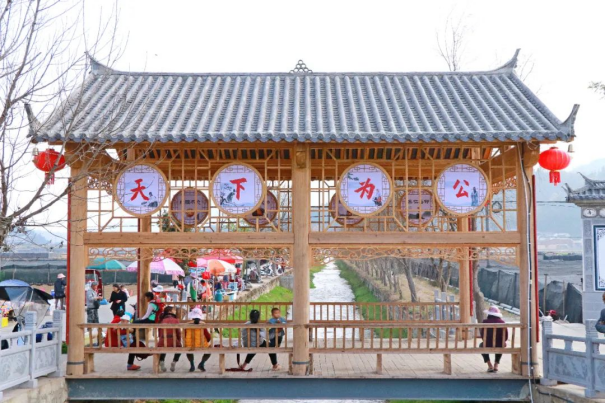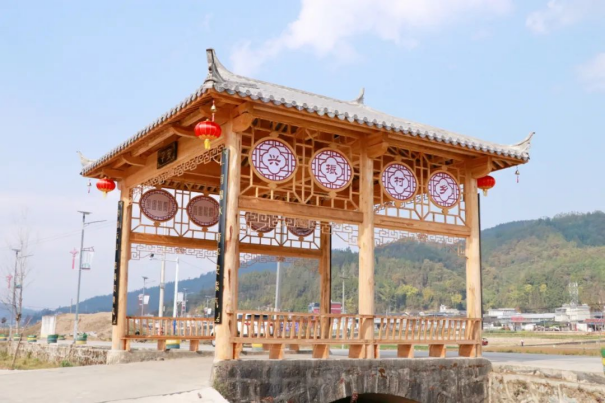 打造传承展示窗,文化增色强底蕴。廊桥是古代建筑景观设计史上的绚烂瑰宝,它既给群众提供了通行上的便捷,也是展示当地文化传承的重要“窗口”。平达乡通过对优秀传统文化的挖掘整理,坚持古为今用、推陈出新,为7座廊桥定位不同的文化主题,重点以展示党建文化、民族文化、中华传统优秀文化、平达特色文化、尊师重教文化等为主。通过打造独具特色的廊桥文化,在展示平达文化传承,让人们感知平达、认知平达、记住平达的同时,以润物无声、潜移默化的方式引导群众增强对优秀文化的热爱,促进全乡文化发展,提升文化影响力,增强平达文化底蕴。