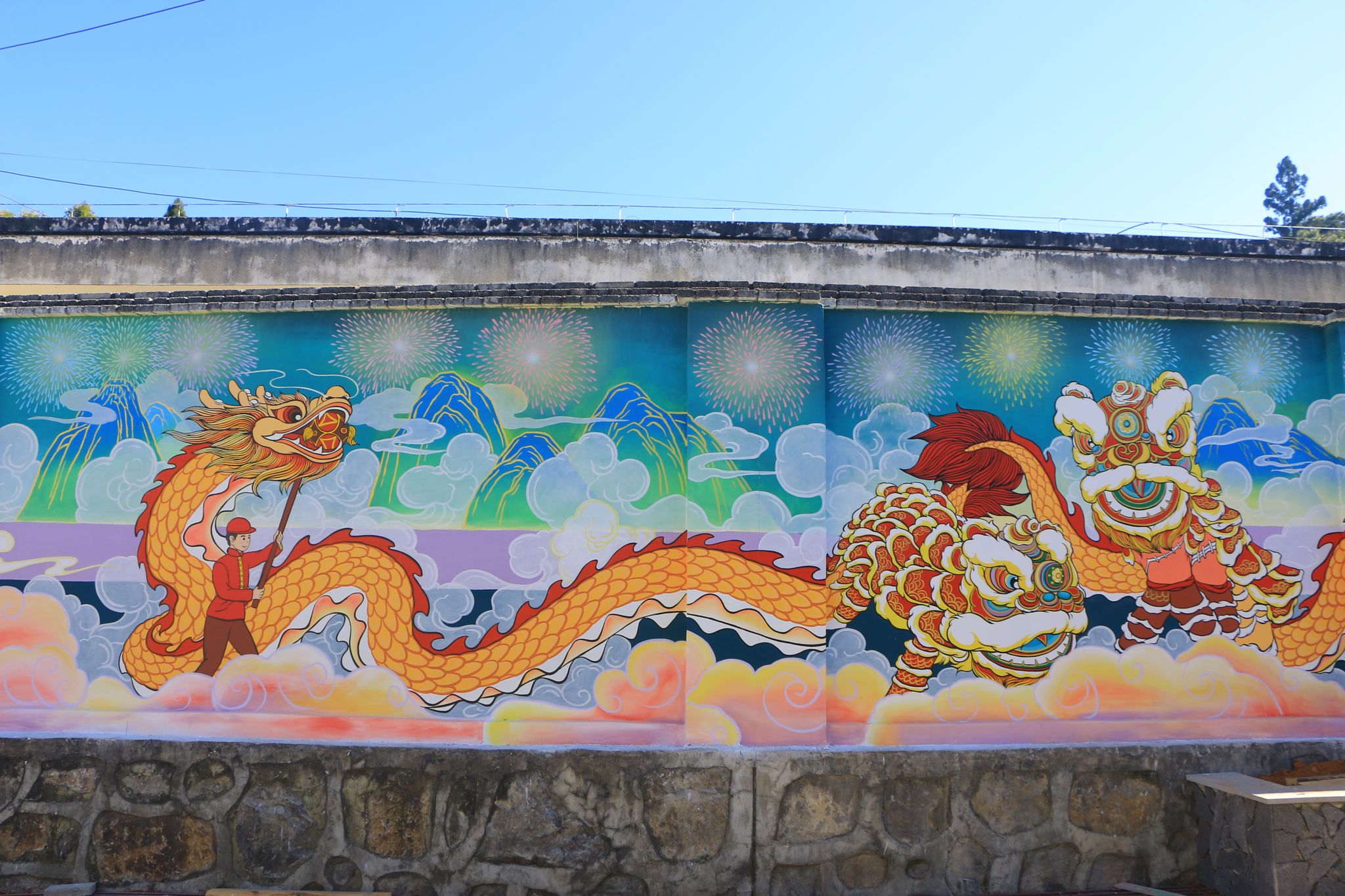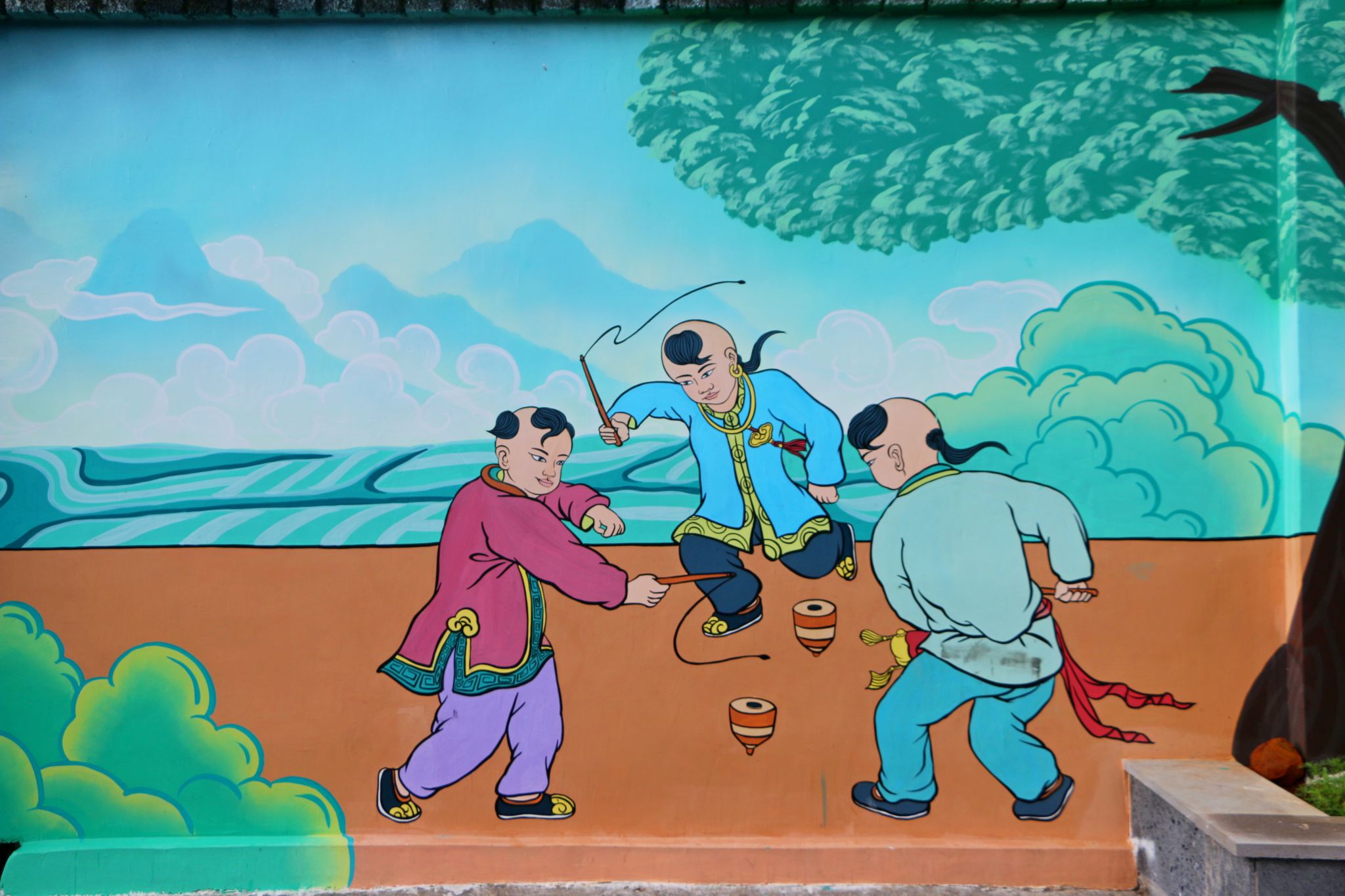沿着平达乡平达社区大寨自然村崭新的柏油路缓步前行,舞龙、打陀螺、平达“圆字话”、上刀山下火海……一幅幅独具特色的墙体画便映入眼帘,活灵活现的墙体画不仅扮靓了环境,还彰显了平达乡深厚的文化底蕴。