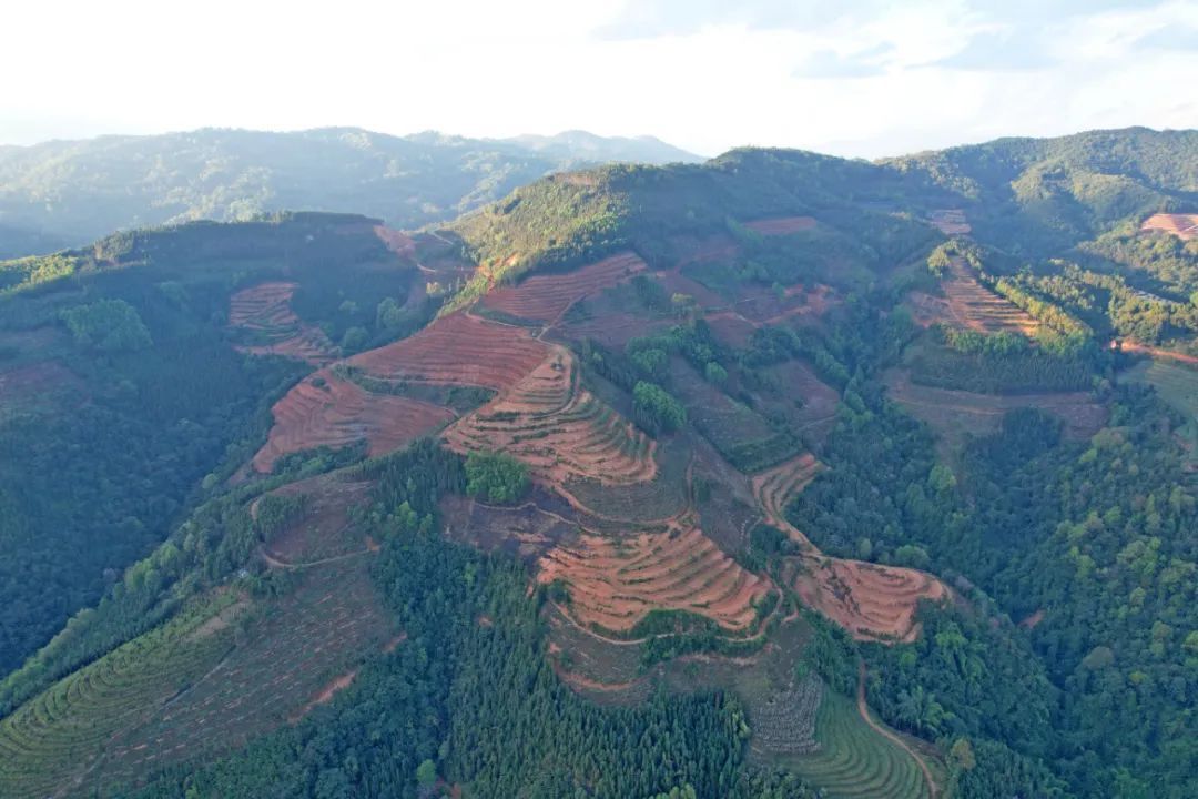 在实施过程中,充分利用松坡山地形地貌和气候优势,采取小改大、弯改直、坡改梯等方式,集中连片整改,实现地块间的互联互通和规模连片,将地形陡、地块窄、水土流失严重的山地改造成“保土、保水、保肥”的“三保”梯田,大大提升了土地质量,为产业化、规模化种植甘蔗创造了条件。