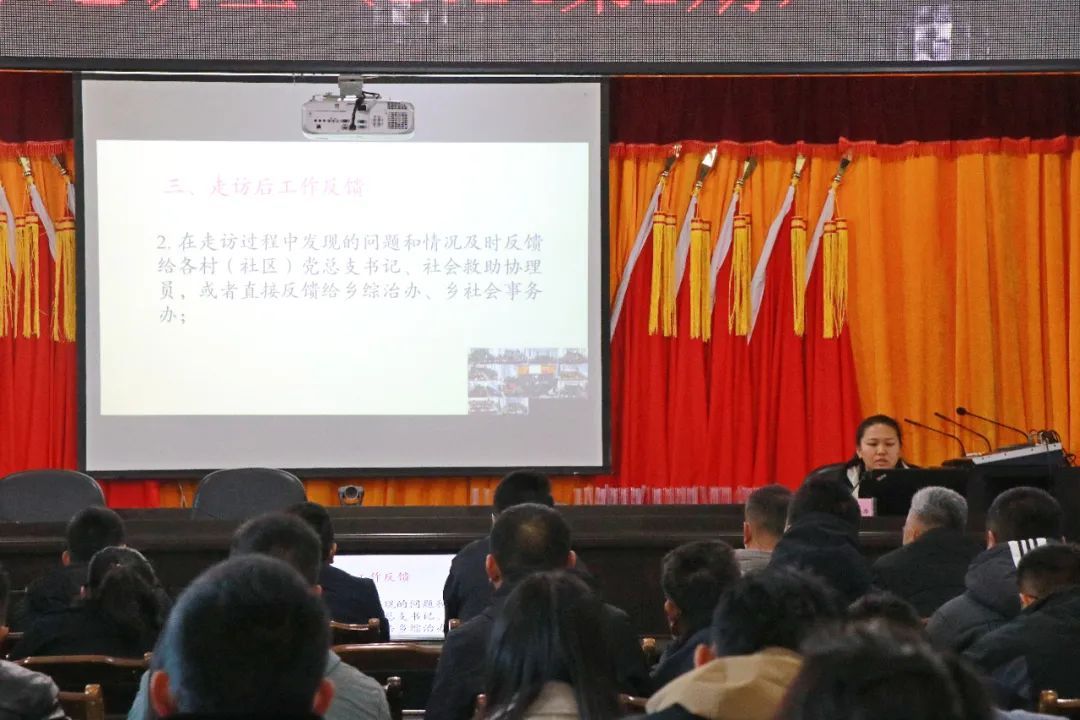 会议中,讲解员以走访流程为脉络,走访内容为延伸,认真讲解走访步骤,确保包保责任人走访出实效。走访前,走访人员要向村组干部充分了解包保儿童家庭基本情况、生活条件等,打牢走访根基。走访中,结合被走访人实际,因人而异根据走访提纲进行访问,并告知监护人履行监护责任及注意事项,严格遵循保密原则;同时,对走访中遇到的问题力所能及给予帮助解决。走访后,将发现的问题及时进行反馈和跟踪落实,对村级不能解决的立即转交乡级协调解决,确保问题“事事有着落,件件有回音”。
