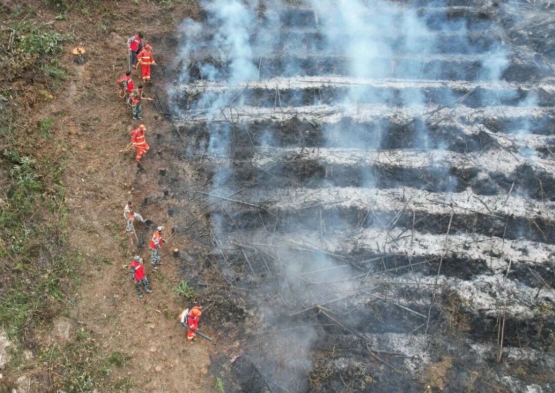经过近一小时的奋力扑救,模拟火情被成功扑灭。队员随后开展火场清理、余火排查,严防复燃。本次演练有效验证平达乡森林草原灭火扑救方案可行性与操作性,强化各部门协同作战应急联动机制,实现了“以练促战、以练强能”的目标。