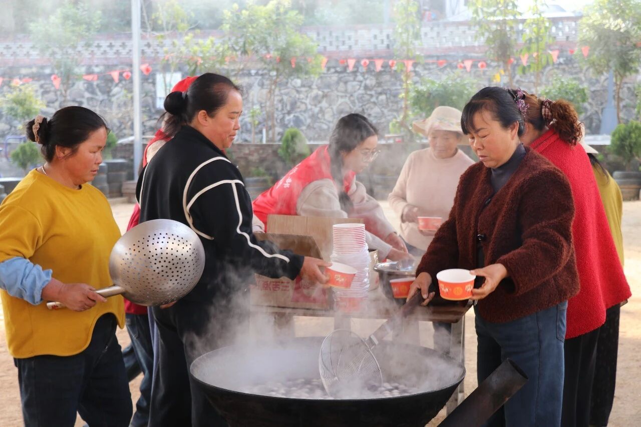 另一旁的汤圆制作区也热气腾腾、温情满满。工作人员与志愿者们早早准备好了食材,随着一颗颗圆润的汤圆下锅、出锅,一碗碗象征着团圆美满、热气腾腾的汤圆被递到每一位参与者手中,大家围坐品尝,闲话家常。“汤圆甜,心里更甜。”带着孙子来参加活动的村民高有娣笑着说,“这几年村里节庆活动越办越好,有得玩有得吃,孩子们都特别高兴。”