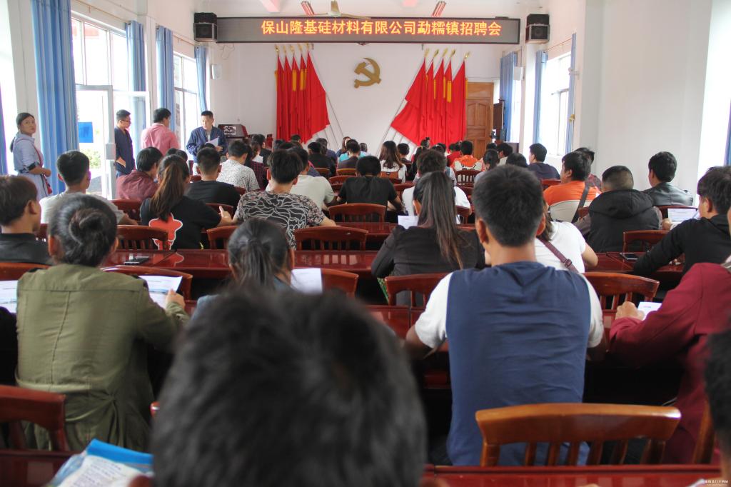 保山隆基硅材料有限公司位于保山工贸园区龙陵园中园,主要生产圆柱形单晶硅棒,公司正在发展壮大,工作人员需求量多,隆基公司多次到乡镇进行招聘,为农村劳动力转移就业提供了大量要求低、待遇好的岗位,勐糯专场招聘面试人员分为5组进行,招聘现场火爆。