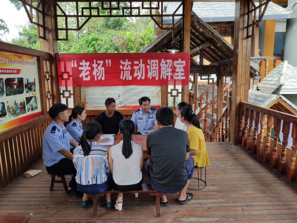 勐糯镇是一个多民族聚居的乡镇,由于生活习惯存在一定差异,家庭、邻里之间因婚恋、山林土地、治安案件等引发的矛盾纠纷较为突出,为有效解决这一难题,勐糯派出所主动汇报、积极想办法,得到了勐糯镇党委、政府和相关职能部门的重视和支持,创新建立了多元化的矛盾纠纷化解机制。一是推广“三级三次”社会矛盾调处模式。完善组、村、镇三级矛盾纠纷调处网络,聘请小组“五老服务队”为初级调解员、各村(社区)信访综治员为二级调解员、党委政府相关职能部门工作人员为三级调解员,对“调解员”每年进行不少于2次的业务技能培训,每级调解员至少开展调解工作三次以上方可层层上报,并通过“以奖代补”方式调动“调解员”主动作为,切实将矛盾纠纷化解在一线。二是打造“两个调解室”。2019年初,勐糯派出所成立了“老杨调解室”。充分发挥有着37年警龄的老民警杨育恩同志熟人熟地熟情况、善做群众工作、善于调解工作的优势,通过“老杨”“早、快、熟、活、细、诚”工作法,累计调解矛盾纠纷40余起,调解成功率达100%。同时创新成立以村调解室、小组活动室、警务车辆为主的“流动调解室”,通过电话、微信预约,民警到村、到小组、到现场办公,变群众“上访”为干部“下访”,实现了问题、警情“就近就地”及时处置。