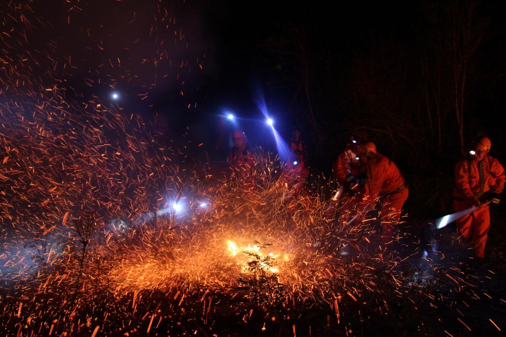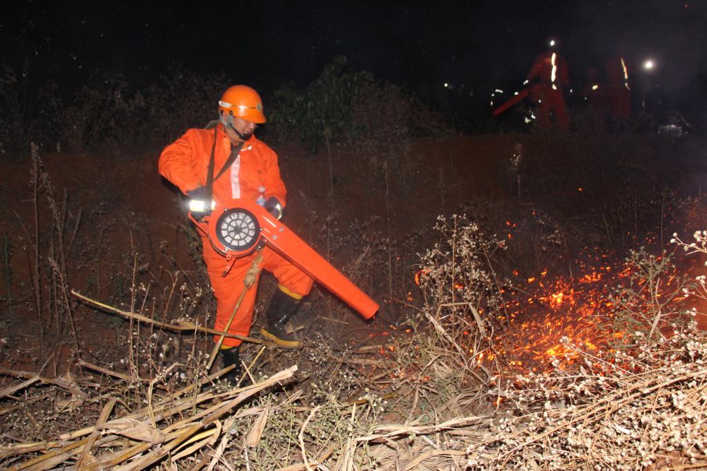 “报告!着火面积超过2亩,火险等级4级,东南风2级、现场主要以甘蔗叶和人工林为主、火势难以控制”随即,扑火人员立即组织开辟森林防火隔离带,利用风力灭火机和水枪分两组沿火线两翼扑打、应急扑火队用二号工具清理余火。