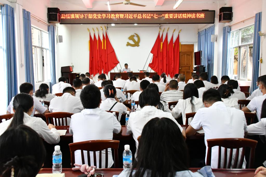 勐糯镇坚持将学习贯彻习近平总书记“七一”重要讲话精神作为重中之重,本次读书班邀请了县委党校唐安茂老师就学习贯彻习近平总书记“七一”重要讲话精神进行了专题宣讲,专题宣讲中深入解析了习近平总书记“七一”重要讲话精神的重要意义、主要内容和丰富内涵,进一步引导参训学员读原文、悟原理,深刻领会习近平总书记“七一”重要讲话的重大意义、丰富内涵、核心要义和实践要求,确保了入脑入心、学深学透。