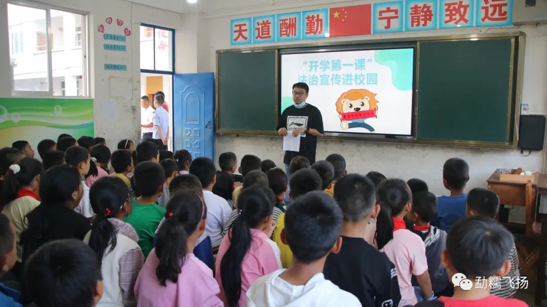 为进一步做好校园安全教育工作,提升在校学生法律意识和安全意识,增强学生法治观念和自我防范意识与能力,营造良好的校园法治氛围。近日,勐糯镇沟心寨村结合“我为群众办实事”实践活动,联合镇司法所、派出所、交警中队、社会事务办等相关部门到沟心小学开展了“法治宣传进校园”活动。活动现场,工作人员用个性化的宣讲方式和实际案例引导青少年儿童学法、知法、懂法、守法,学会用法律武器保护自己。