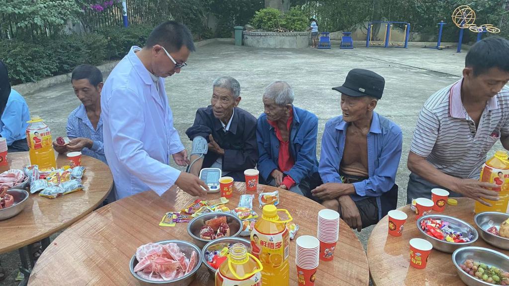 健康体检办实事。体检活动中,医务人员为老人们量血压、测血糖,并详细询问老人们的身体状况,耐心细致的检查、分析病情,讲解注意事项,认真解答老人们关于常见病、多发病的预防诊治及愈后疑难问题。
