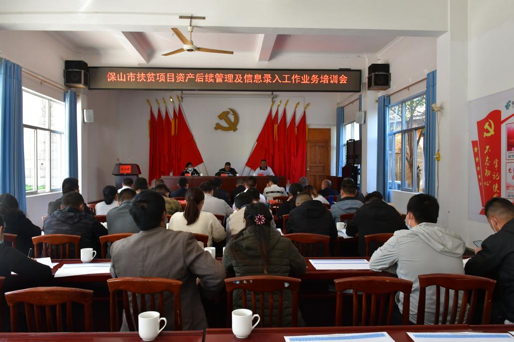 为贯彻落实全省扶贫项目资产后续管理工作推进会议精神,全面加强全市扶贫项目资产后续管理工作,按时按质完成扶贫项目资产确权移交和信息录入工作,保障脱贫的稳定性和可持续性,巩固提升脱贫成果。11月8日,全市扶贫项目资产后续管理及信息录入工作业务培训会在龙陵县勐糯镇召开