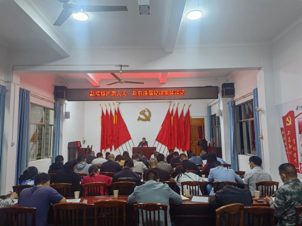 11月9日下午,勐糯镇召开县乡两级人大换届工作推进会。镇领导班子成员、村(社区)党总支书记、镇属单位负责人参加会议。会上,集中观看了换届选举警示教育片《警钟长鸣》,传达学习了龙陵县县乡两级人大换届工作推进会暨开展严肃换届纪律集体谈话的会议精神,对人大换届工作进行了再安排、再部署。