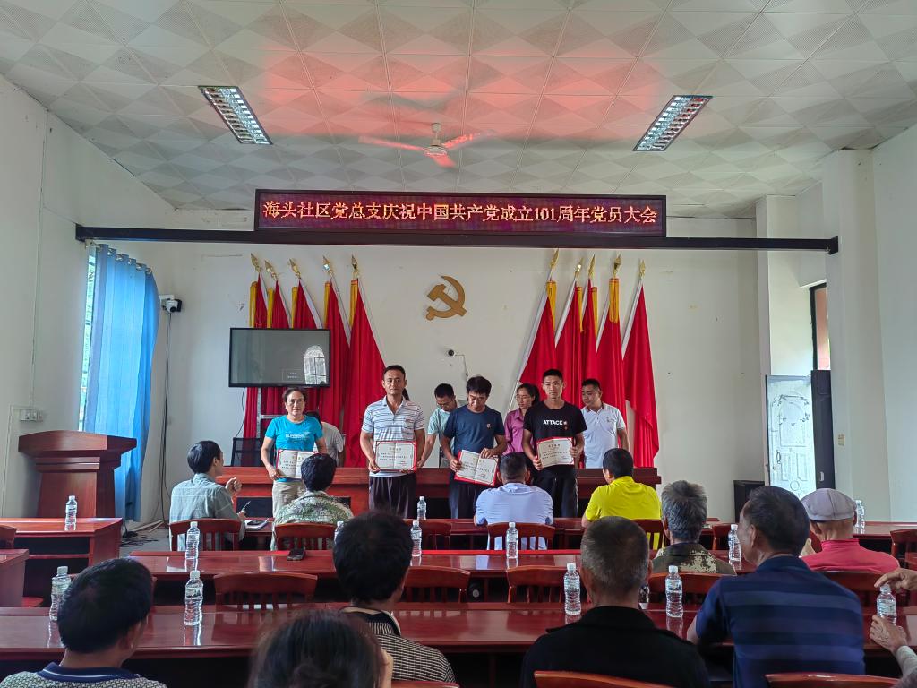 6月26日上午,海头社区开展“庆七一”主题党日活动。通过升国旗、重温入党誓词、表彰“两优一先”、观看教育视频、开展大海保护活动等方式,以实际行动为大海“添绿增景”,进一步弘扬了红色精神,赓续了红色血脉,传承了红色基因。