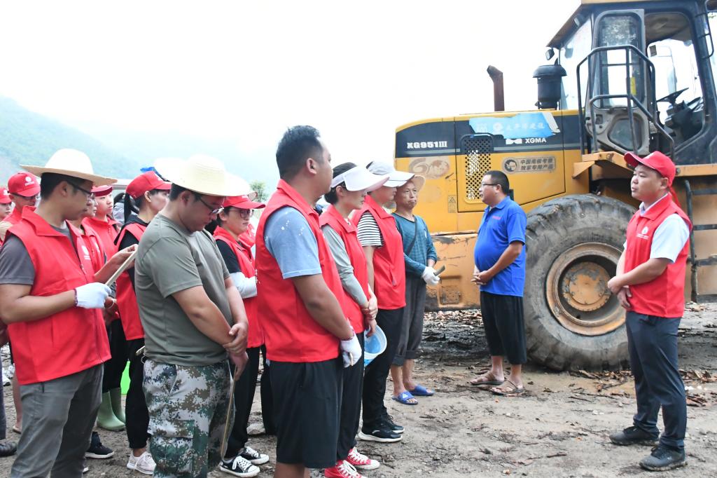 七点,小海大青树下已经集聚起了一群人,他们有的手提水桶,有的手挥铁锹,戴起帽子,手套,穿起红色志愿服,分成四组排起了长长的队伍,他们蓄势待发,目光坚定。