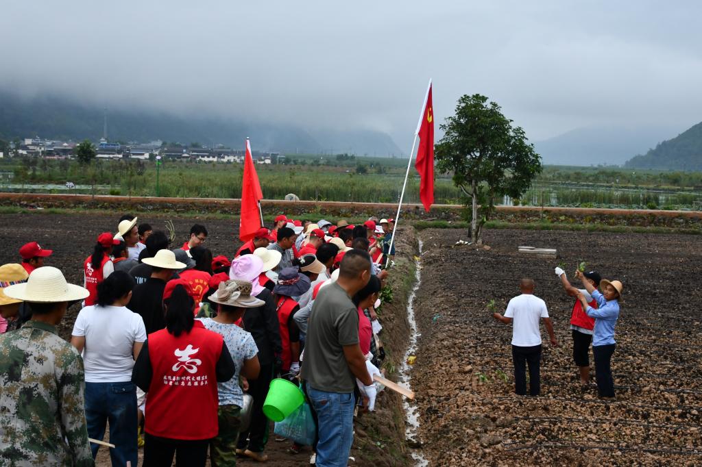 为通过种植优质农作物推动产业结构调整,不断壮大村集体收入,带动村民致富增收,9月5日清晨,勐糯镇全体干部职工及大寨社区各党支部党员群众,深入践行“一线工作法”,到大寨小海旁开展新时代文明实践义务种草莓志愿服务活动。
