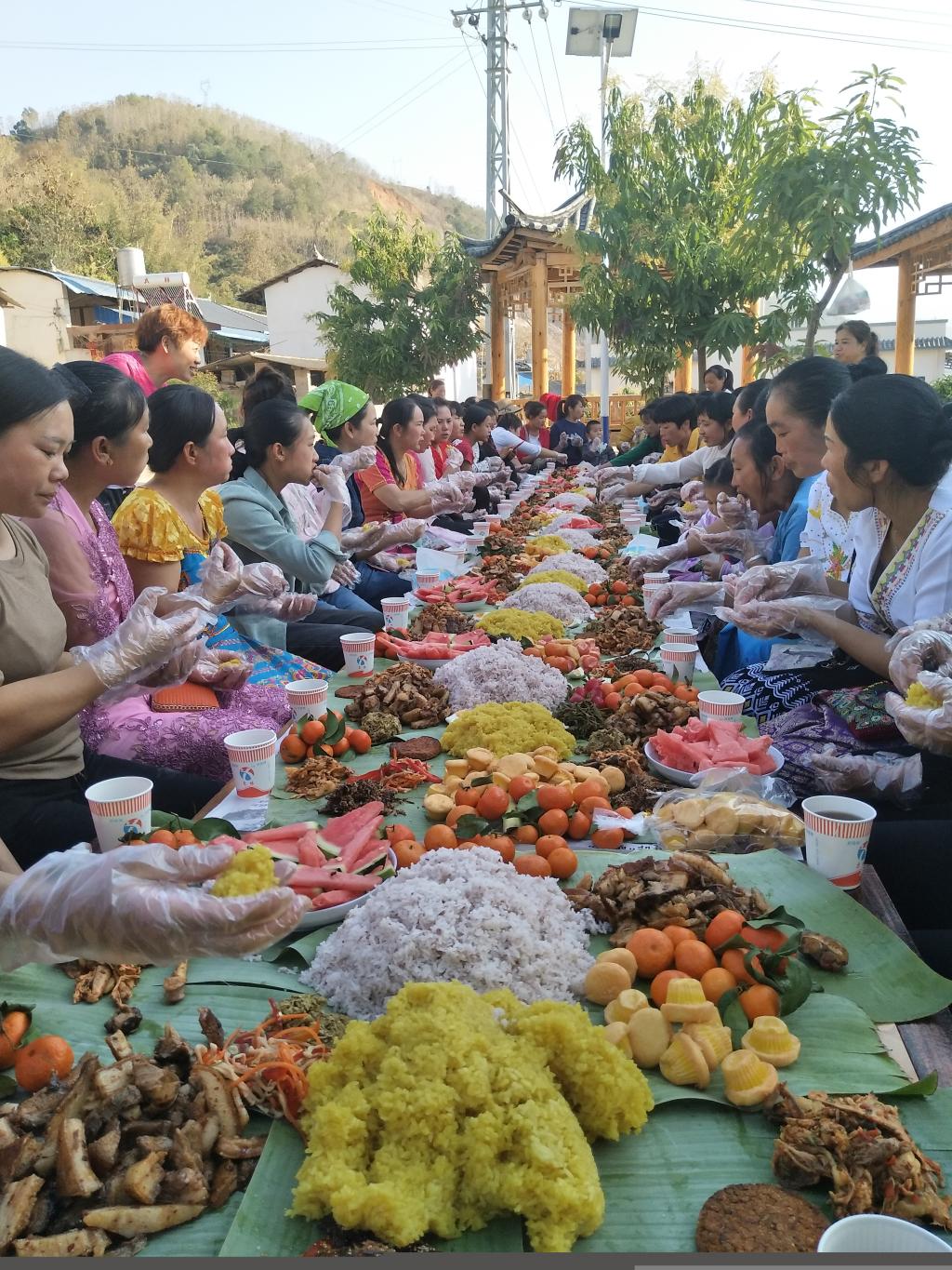 经过一年的辛勤劳作,田野上稻浪滚滚飘香阵阵。在这五谷丰登之际,一起品尝百人手抓饭,在饭桌前与亲密的家人谈谈心,与重逢的朋友叙叙旧,祝福彼此“如哩金旺”,一起庆祝丰收喜悦。