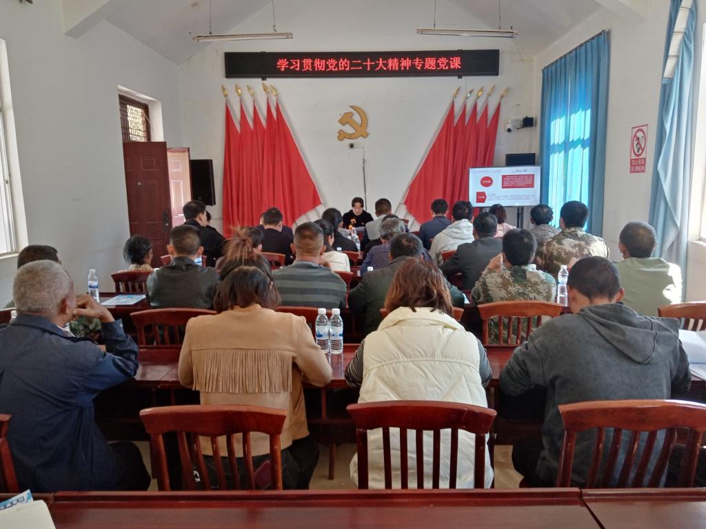 课上指出,学习好、宣传好、贯彻好党的二十大精神,是当前和今后一段时期的首要政治任务,广大干部群众要全面学习贯彻党的二十大精神,将学习成果转化为全面推进乡村振兴的实际行动。一是以产业兴旺为重点,挖掘本地特色优势资源,因地制宜发展现代农业和精品农业;二是以生态宜居为关键,加大农村综合环境整治力度,推动农村基础设施提档升级;三是以乡风文明为保障,抓好农村精神文明建设,凝聚乡村振兴正能量;四是以治理有效为基础,加强农村基层队伍建设,建设平安和谐乡村;五是以生活富裕为根本,拓宽群众增收渠道,切实提高民生保障水平。大家一致认为,丛岗村的发展迎来了新挑战、新机遇,党员干部要充分发挥“领头羊”作用,发扬斗争精神、增强斗争本领,切实增强战略能力、应对水平。村、组各级领导干部要以上率下,带动基层党组织和党员干部深化学习理解,把党的二十大精神转化为奋进新征程、建功新时代的强大力量。