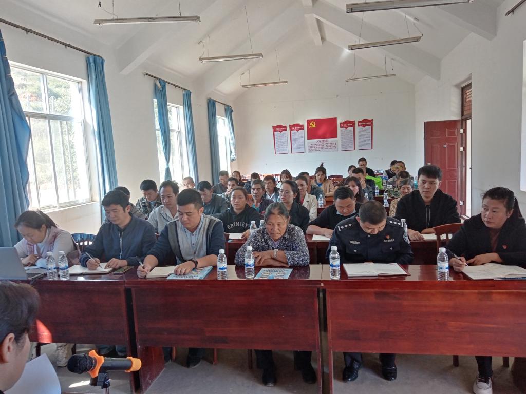 保山市公安局交警支队党委委员、政委蒋澍红到勐糯镇丛岗村挂钩联系点为村“两委”干部、党员群众上了一堂学习贯彻党的二十大精神专题党课。