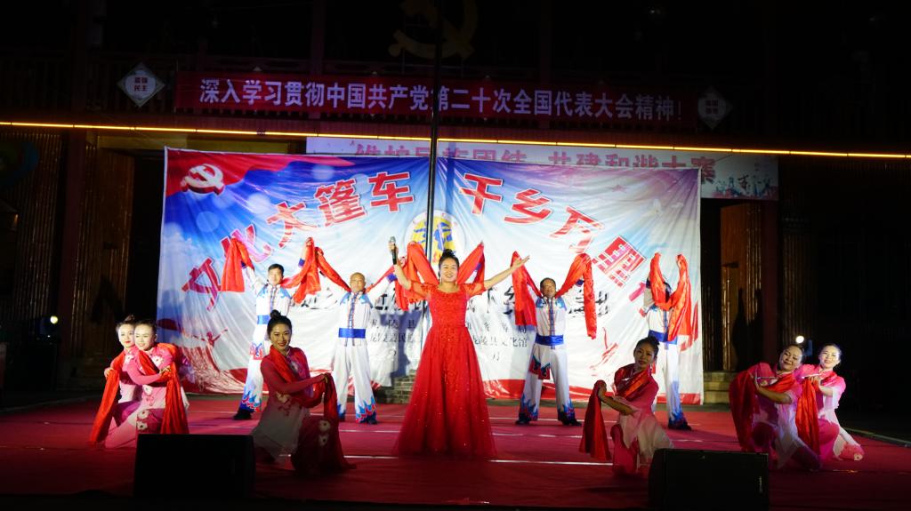 演出现场,《把一生交给党》《石榴结籽粒粒红》《幸福赞歌》《小邑拉花》等10余个节目轮番上演,台上精彩纷呈,台下气氛热烈,演员们生动的表演、扎实的唱功及细腻的情感,得到了观众们的阵阵掌声与声声喝彩,互动环节“党的二十大知识问答”观众积极踊跃竞答不仅赢得了奖品,更获得了知识。